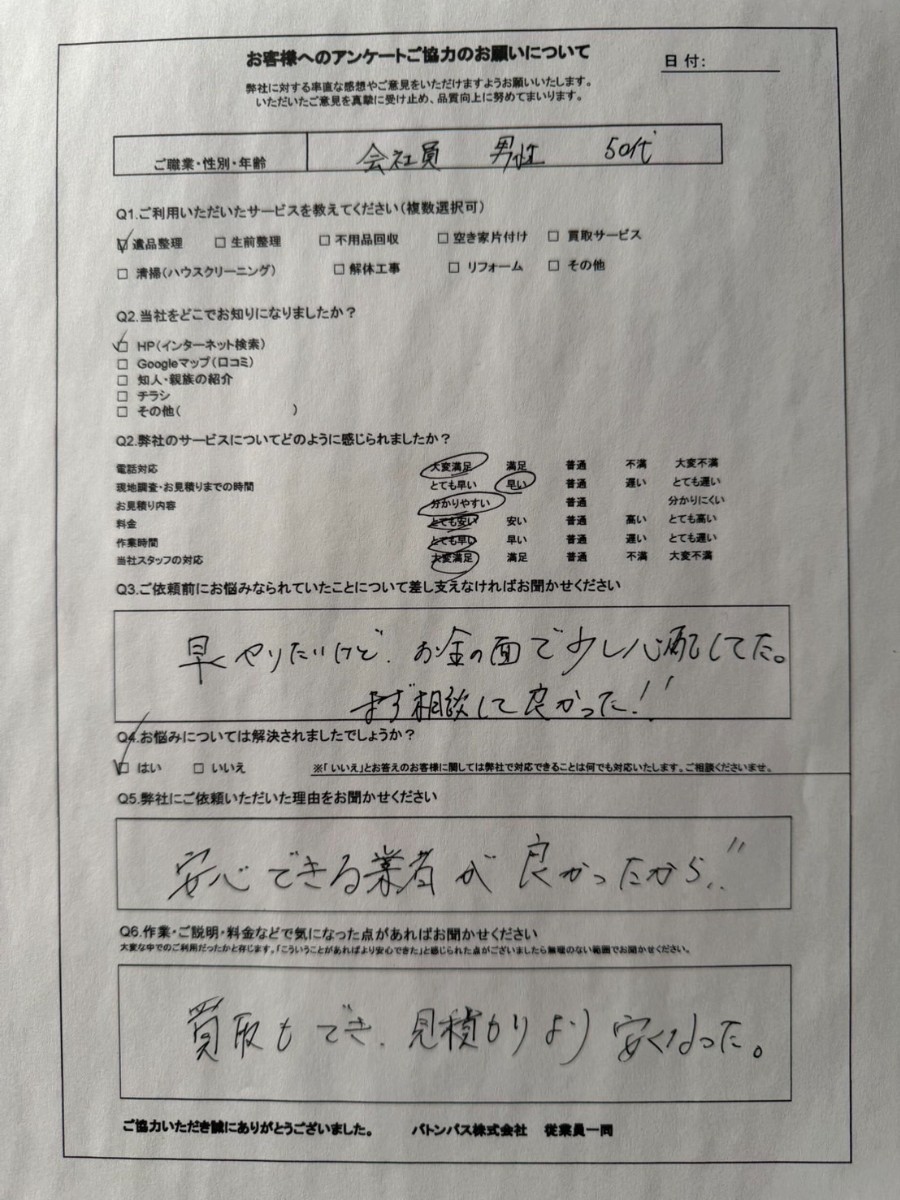 - 遺品整理 つくば市/50代男性