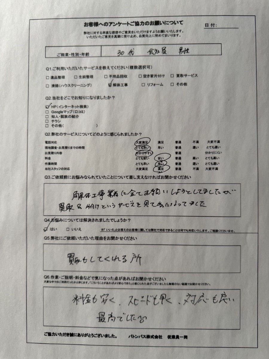 - 解体工事 水戸市/30代男性