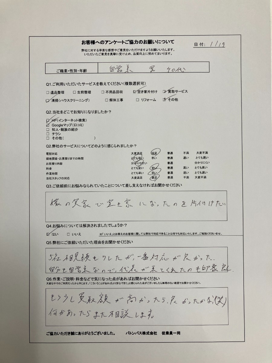 - 空き家片付け ひたちなか市/40代男性